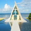 コンラッドのインフィニティーチャペルはビーチに一番近い挙式会場です。実際に見学をしてみるとチャペルは意外に大きくて、イメージしていたものより大きく感じる方も多いようです。チャペルは地面よりも高い位置に建てられているのでバージンロードかなの眺めはホテルのガーデンをちょっと見下ろすような感じになります。パーティー会場は3つのレストランから選択しますが、どのレストランもお食事がおいしいです。迷った時は室内がお勧め。